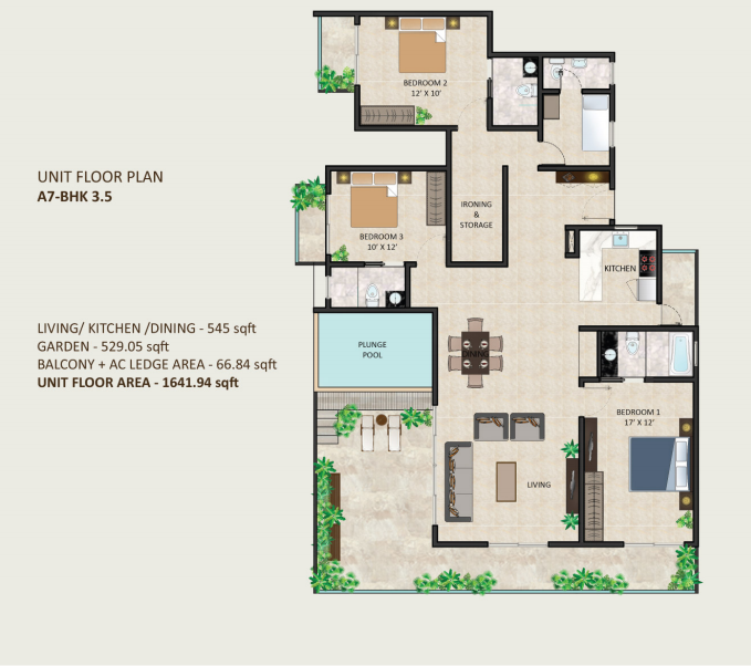 | A7-BHK 3.5 | Terrace Garden | 529.05 sqft |