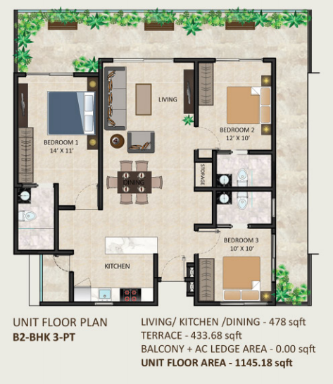 | B2-BHK 3-PT | Terrace Garden | 433.68 sqft |